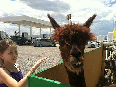 We're off to Utah! We made a pit stop at "The Middle of Nowhere" in Idaho, where the bathrooms were, unfortunately, out of order, but the resident alpaca was happy to pose for goofy pictures.